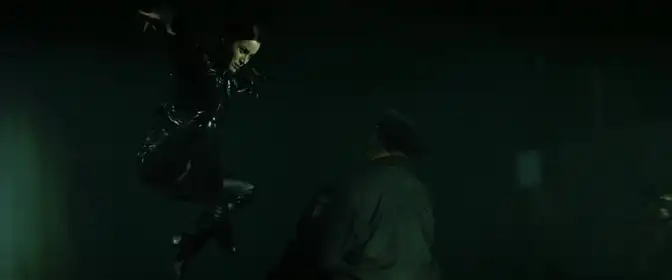 Нео-нуарный пласт картины проявляется в мрачной палитре, контрастном освещении, применении теней и городской атмосферы, напоминающей классические нуаровые фильмы. Однако «Матрица» трансформирует эти нуаровые элементы, интегрируя их в киберпанковский контекст: город как машина, ночные пейзажи, ощущение отчуждения и коррупции системы. Главный герой, Нео, в этой интерпретации выступает как детектив-одиночка и мессианская фигура одновременно, что усиливает лейтмотив поиска истины и преодоления лжи. Авторы игры с визуальными цитатами не ограничиваются жанровыми клише, они переосмысливают их под новую эпоху цифровой реальности.
