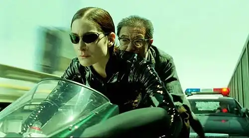 - Тринити (Кэрри-Энн Мосс). В «Перезагрузке» Тринити получает меньше экранного времени, чем в оригинале, но её сцены работают на полную. Погоня на мотоцикле против движения по шоссе — одна из лучших экшен-сцен в фильме. Тринити запрыгивает на крышу грузовика, угоняет мотоцикл и уходит от погони с Мастером Ключей за спиной. Мосс выполняла значительную часть трюков сама. Помимо экшена, её линия в фильме — это ожидание: она знает, что Нео видит сон о её гибели, и всё равно идёт в Матрицу.
